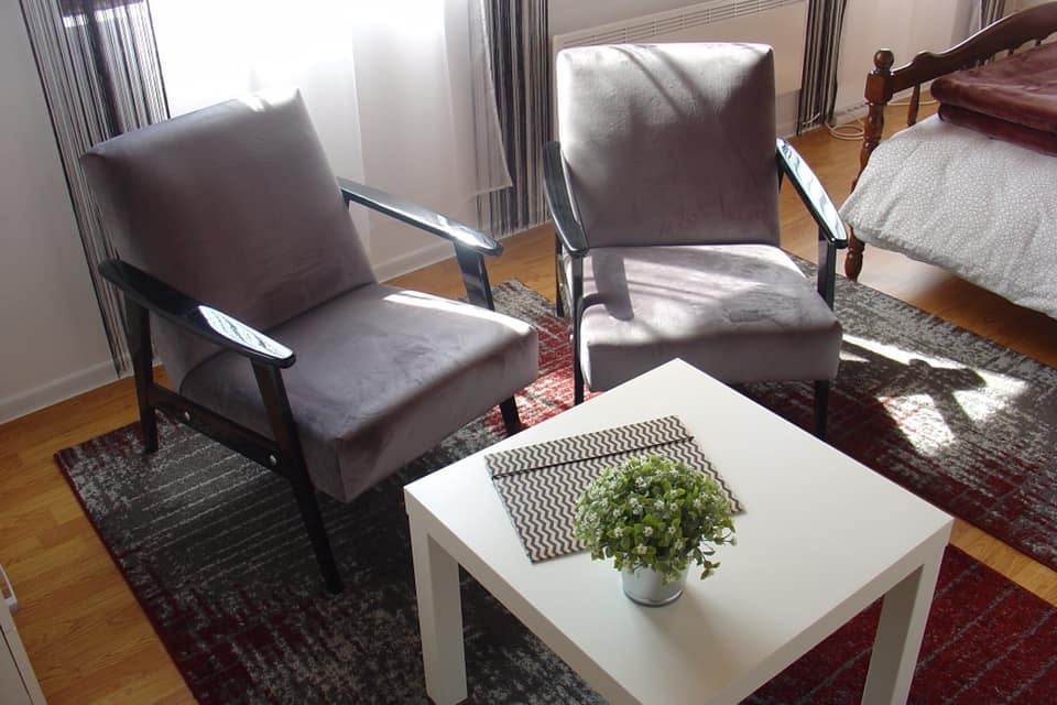 - Kuhinja (posuđe, pribor za jelo, hladnjak, štednjak, pećnica, kuhalo za vodu, toster)