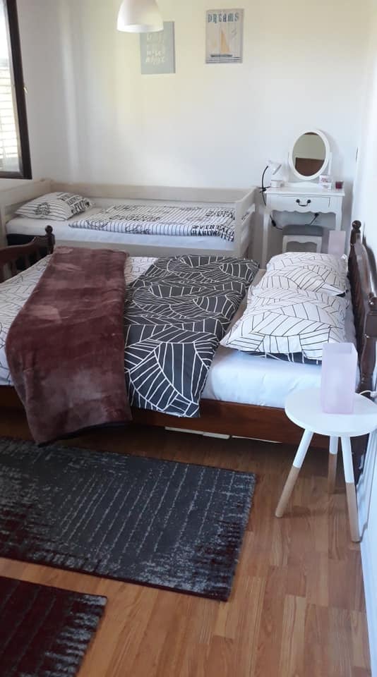 - 1 spavaća soba (bračni krevet, pomoćni krevet, posteljina, glačalo, TV)